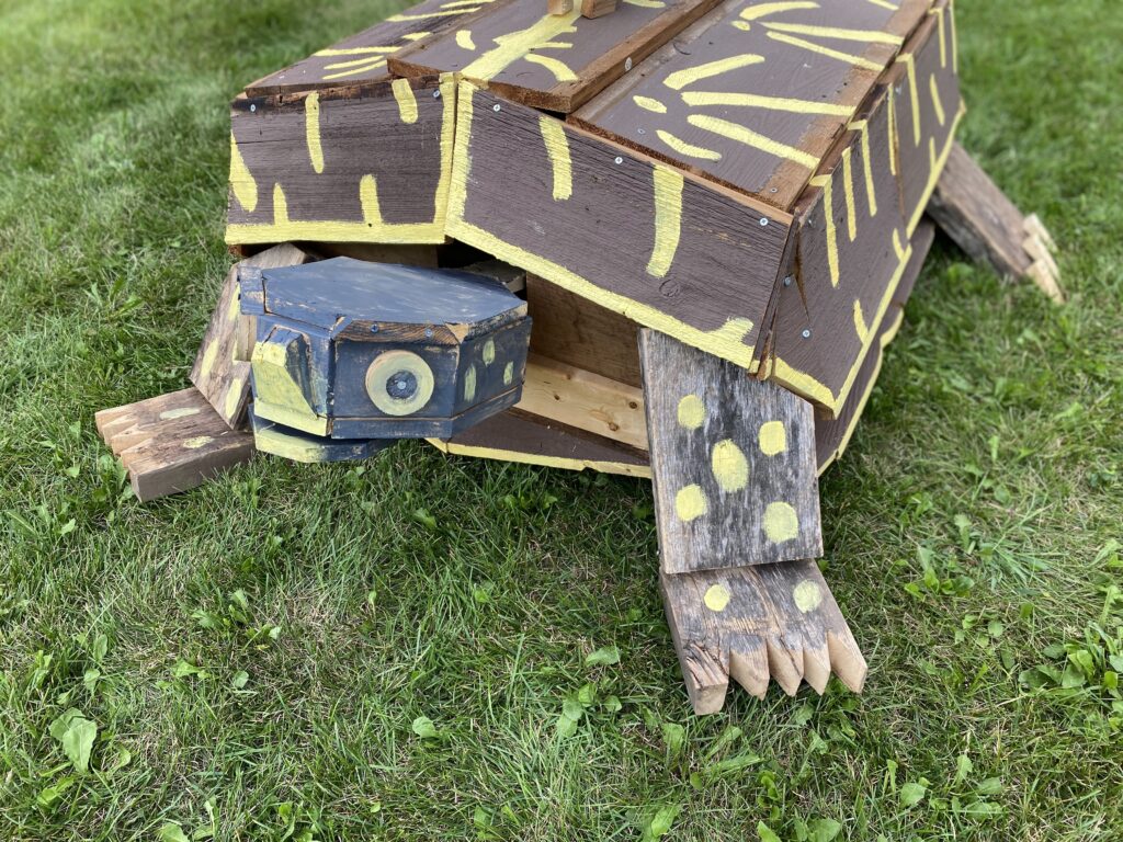 His creativity sparked an idea for me when a neighbor shared some recycled wood—I wondered if I could make a sculpture that not only reused materials, but also told the story of an endangered species. My first creation was an ornate box turtle.