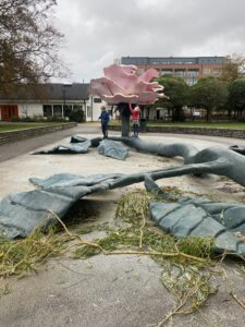 They made real water and sand have places to go. They also had fake water that people could play and move around like a real creek, lake or pond.
